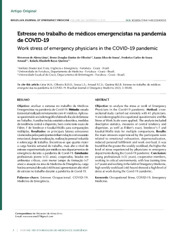 Palavras-chave: Estresse Ocupacional. COVID-19. Keywords: Occupational Stress. COVID-19. Emergency
