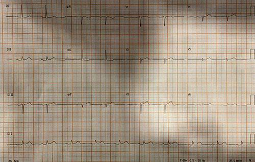 Paciente do sexo masculino, com queixa de palpitações. Qual o diagnóstico eletrocardiografico?