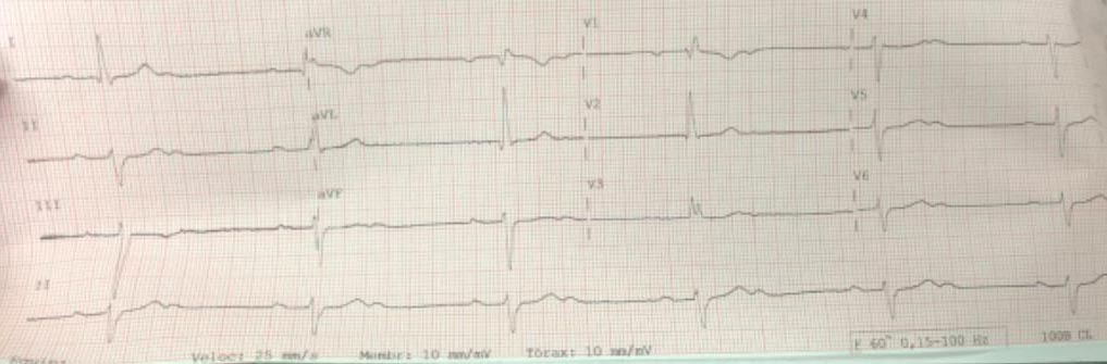 Paciente de 73 anos, feminino com queixa de lipotimia e um episódio de sincope. Qual o diagnóstico eletrocardiografico?