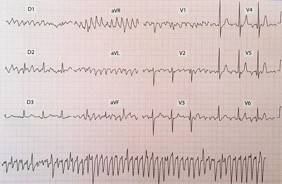 Cuidado, olha com calma, são apenas artefatos pelos tremores. A solução dessa "arritmia" é reduzir os tremores, no caso dos pacientes com Parkinson, colocar os eletrodos das extremidades mais proximais, nas coxas e no braços.