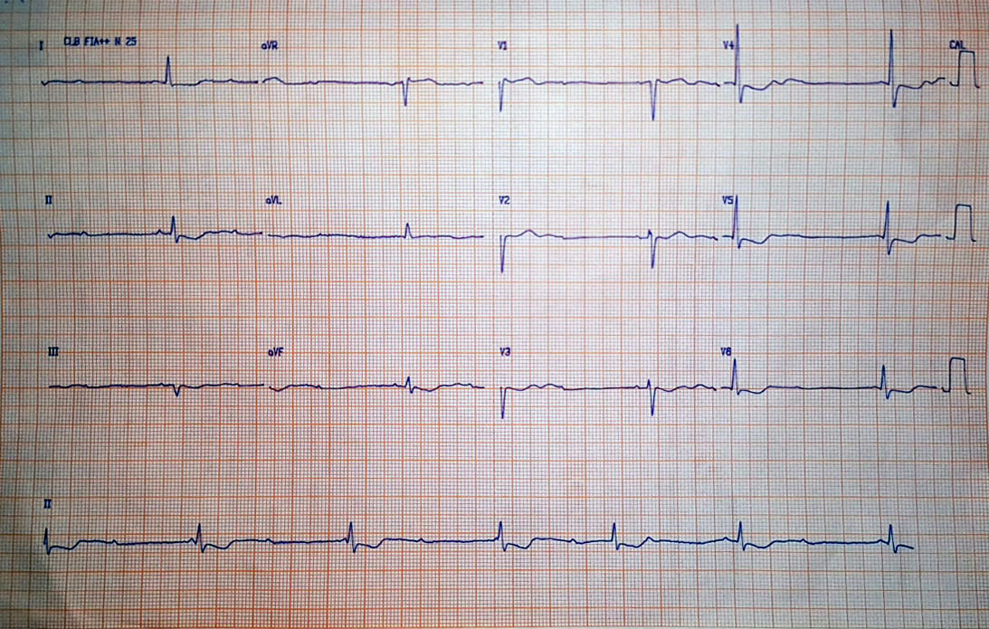 Paciente 75 anos, portador de Ic, admitido por síncope. Não sabe quais medicações usa. Qual o diagnóstico do ecg e qual a provável causa?